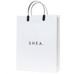 紙袋の正面左側にはショップのロゴを黒1色でオリジナル印刷。(表裏同デザイン)