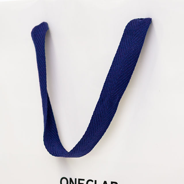 持ち手のハンドルはアクリル平紐で、カラーは紺色をご選択いただきました。