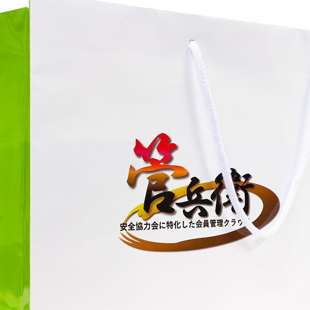 紙袋の両正面には、提供するクラウドサービス名のロゴを大きくフルカラーで印刷。