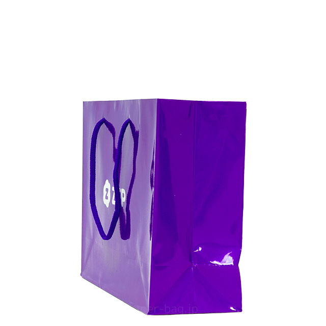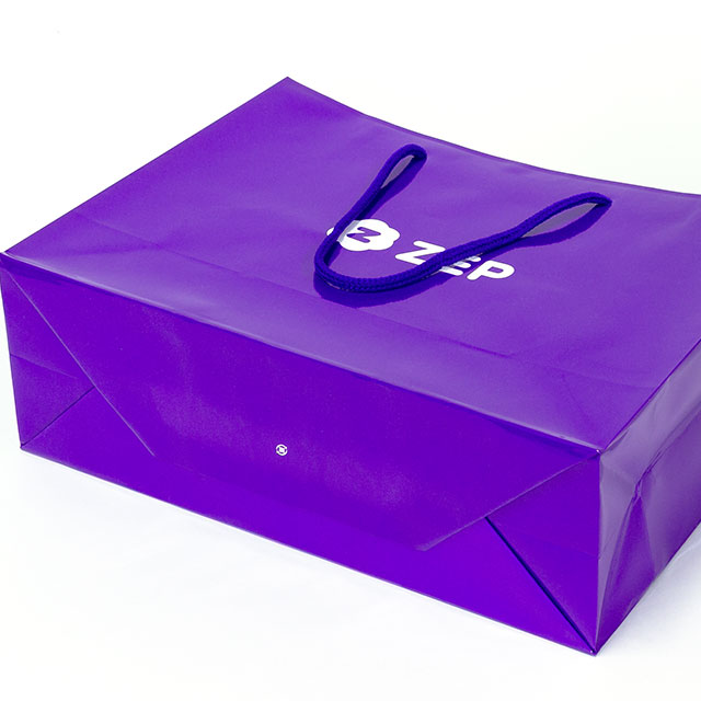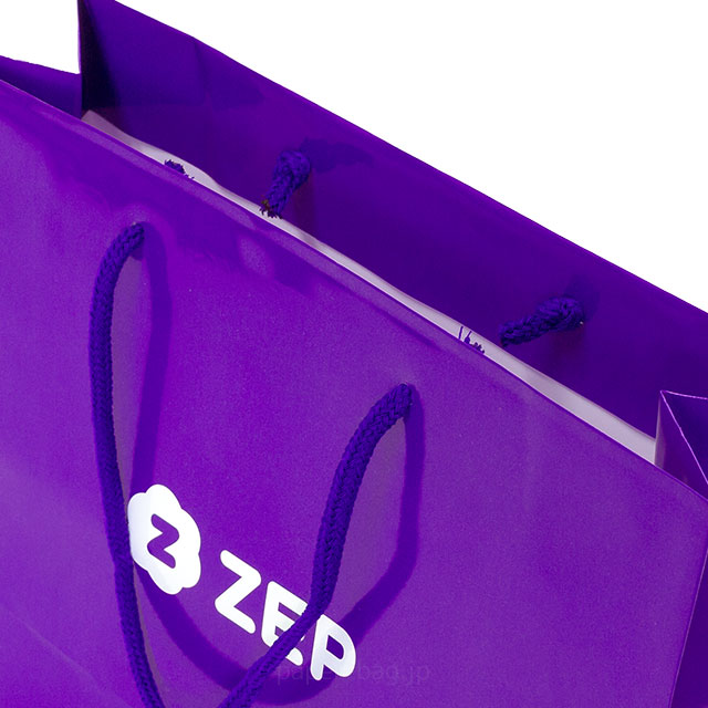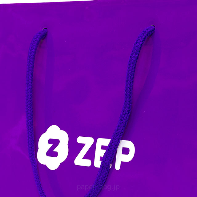 紙袋全体を、提供サービスのメインカラーをイメージした紫色で、特色1色でベタ印刷。