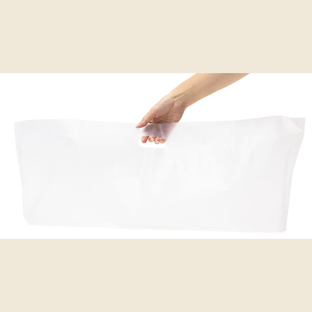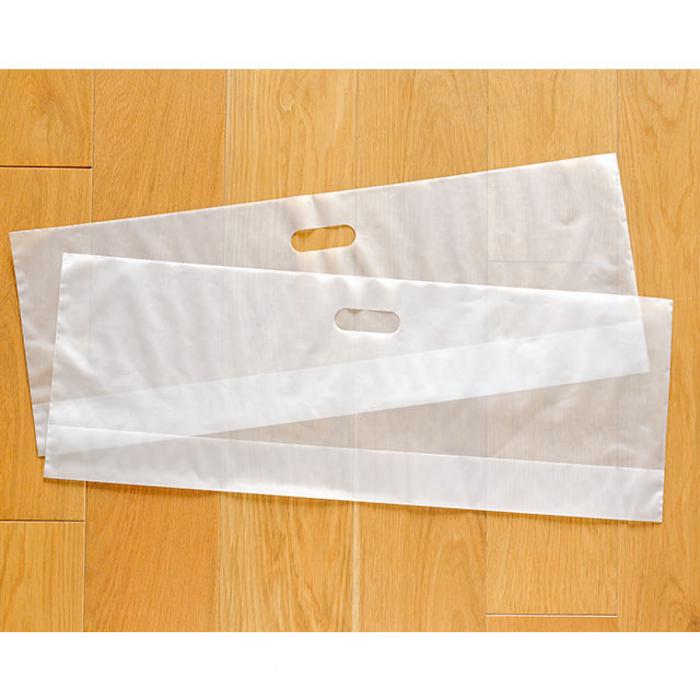 持ち手部分はスタンダードな手穴タイプで、ポリ袋を平置きしても嵩張ることがありません。
