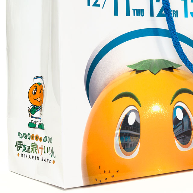 遠目からでもイベント日程が目に入り、キャラクターの存在感も印象付ける、宣伝効果の高いオリジナル紙袋に仕上がりました。