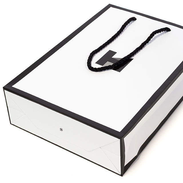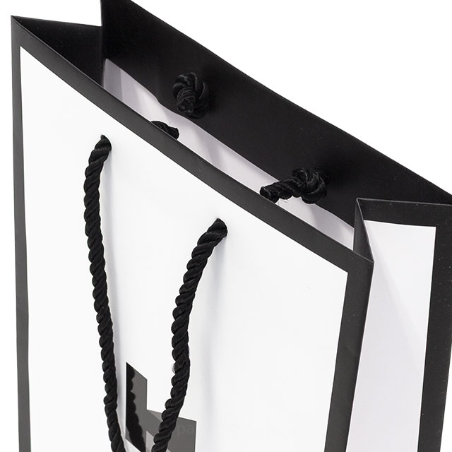 印刷は特色1色で、紙袋の角を縁取りしたデザイン。