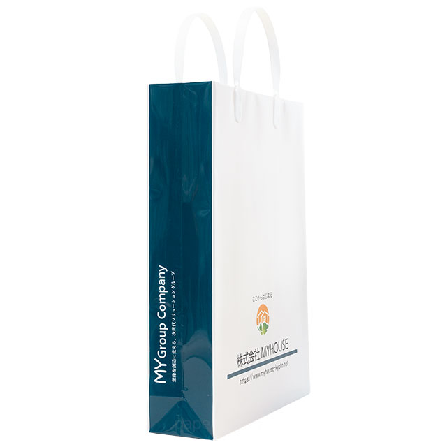 どの角度からみても社名やグループ名をPRすることができる、広告ツールとしても実用性の高いオリジナル紙袋に仕上がりました。