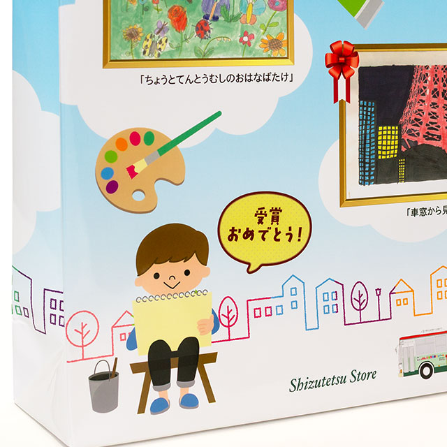 紙袋には受賞作品の絵を展示するように、おもて面、背面に掲載されています。