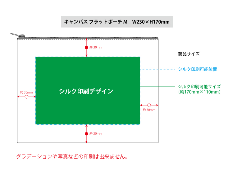 キャンバスフラットポーチM ナチュラル シルク印刷