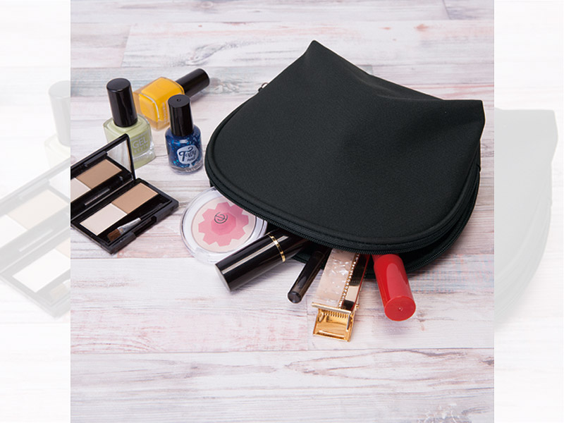 大きく開いて中身も見えやすいラウンド型ポーチ