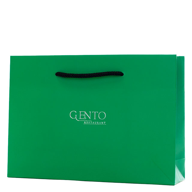 コート紙+マットPPラミネート加工+緑色ベタ印刷した紙袋