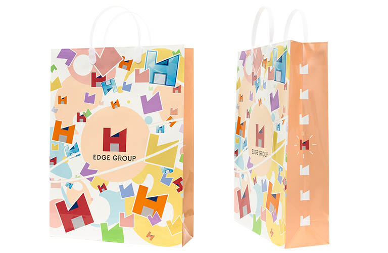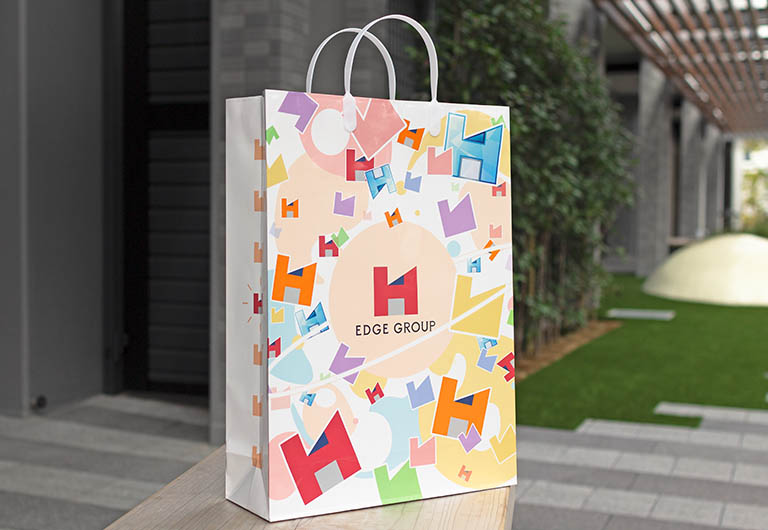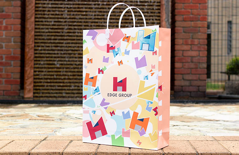 今回の紙袋は、全印刷面をふんだんに活かした、存在感のあるデザインに仕上がりました。