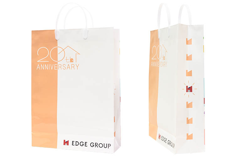 今回は、そんな泰喜建設株式会社様のブランドイメージと20周年の節目を印象づけるオリジナル紙袋を、短納期プラン紙袋(国内生産)にて製作いたしました。